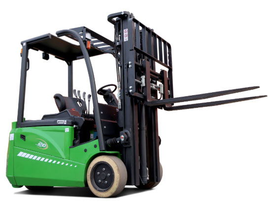 Электрический трехопорный вилочный погрузчик Noblelift FE3D20C грузоподъемностью 2000 кг, компактный и мобильный, что позволяет использовать его в ограниченных пространствах.