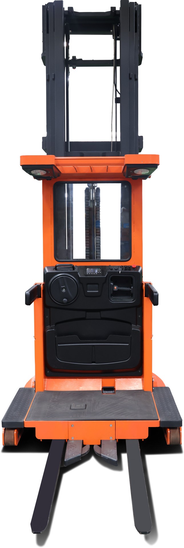 Рулевое управление на месте с поворотом на 360° доступно для обоих моделей подборщиков заказов. Радиус поворота всего 1830 мм, минимальная ширина прохода 1300 мм. Механизм мачты изготовлен из высокопрочных и высокоточных стальных профилей и имеет превосходную конструкцию с минимальными зазорами, что обеспечивает стабильность работы мачты. Сама мачта изготовлена из импортной швеллерной стали. Шасси доступно в двух вариантах ширины: 1080 мм и 1420 мм. Широкое шасси позволяет платформе достигать большей площади захвата, а максимальная высота подбора достигает 9 метров.