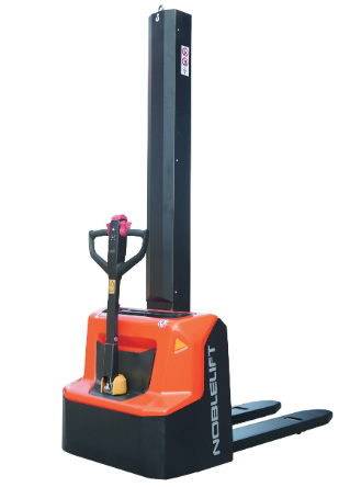 Самоходный поводковый штабелер Noblelift PSE12BM и PSE12NM с мономачтой грузоподъемностью 1200 кг, подъем на 2 м, малый вес, Li-ion батарея, надежный и маневренный.