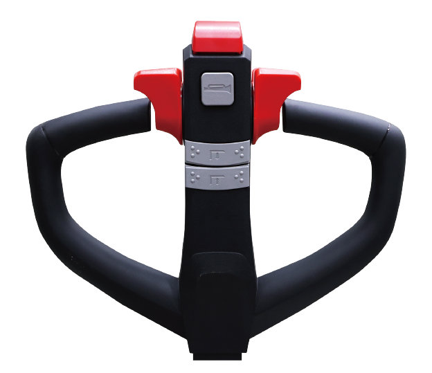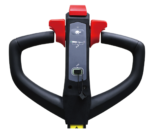 Эргономичный дизайн рукоятки, оснащенной множеством функций удобен в эксплуатации. На ЖК-дисплее отображается уровень заряда аккумулятора и код неисправности, что позволяет с первого взгляда определить состояние электротележки и повысить безопасность управления ею. Все кнопки переключения встроены в удобном для пользователя сенсорном положении и легко доступны операторам.
