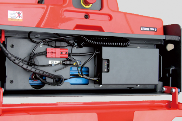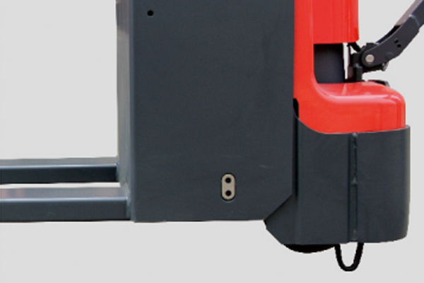 Кнопка медленного хода обеспечивает безопасное и простое управление, особенно в ограниченном пространстве, например, при управлении тележкой в кузове автотранспорта. Встроенное зарядное устройство расположено над аккумулятором, что облегчает зарядку после открытия крышки батарейного отсека. Увеличенный дорожный просвет позволяет легко передвигаться по неровной поверхности с выбоинами или небольшими препятствиями, такими как небольшие пороги, или на прицепах с подъемными воротами.